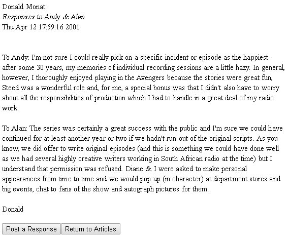 at the Avengers on the Radio website. Unfortunately I've never