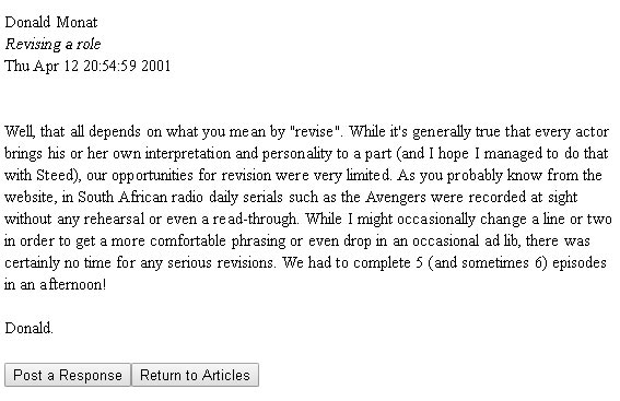 "Did you have much opportunity to revise the role of Steed?"