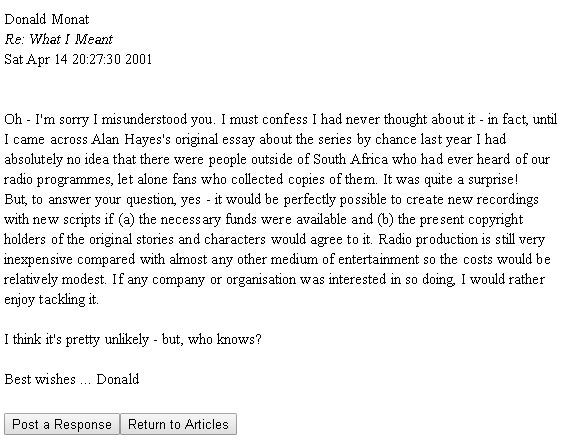 like to second the words of Andrew Pixley — the radio series is