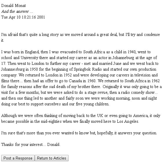 A question for Donald Monat: "Hello