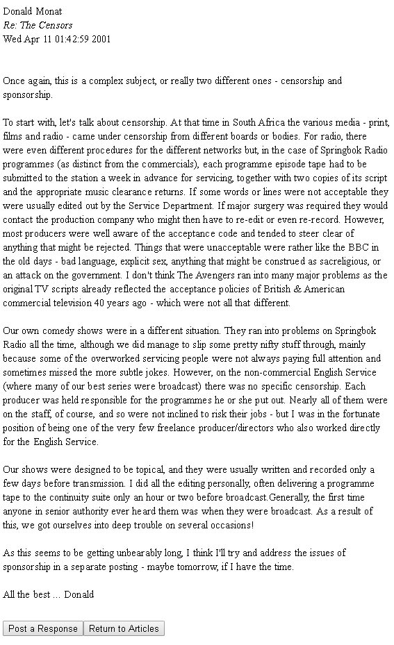 procedures than most. Perhaps you could clarify how the censors worked